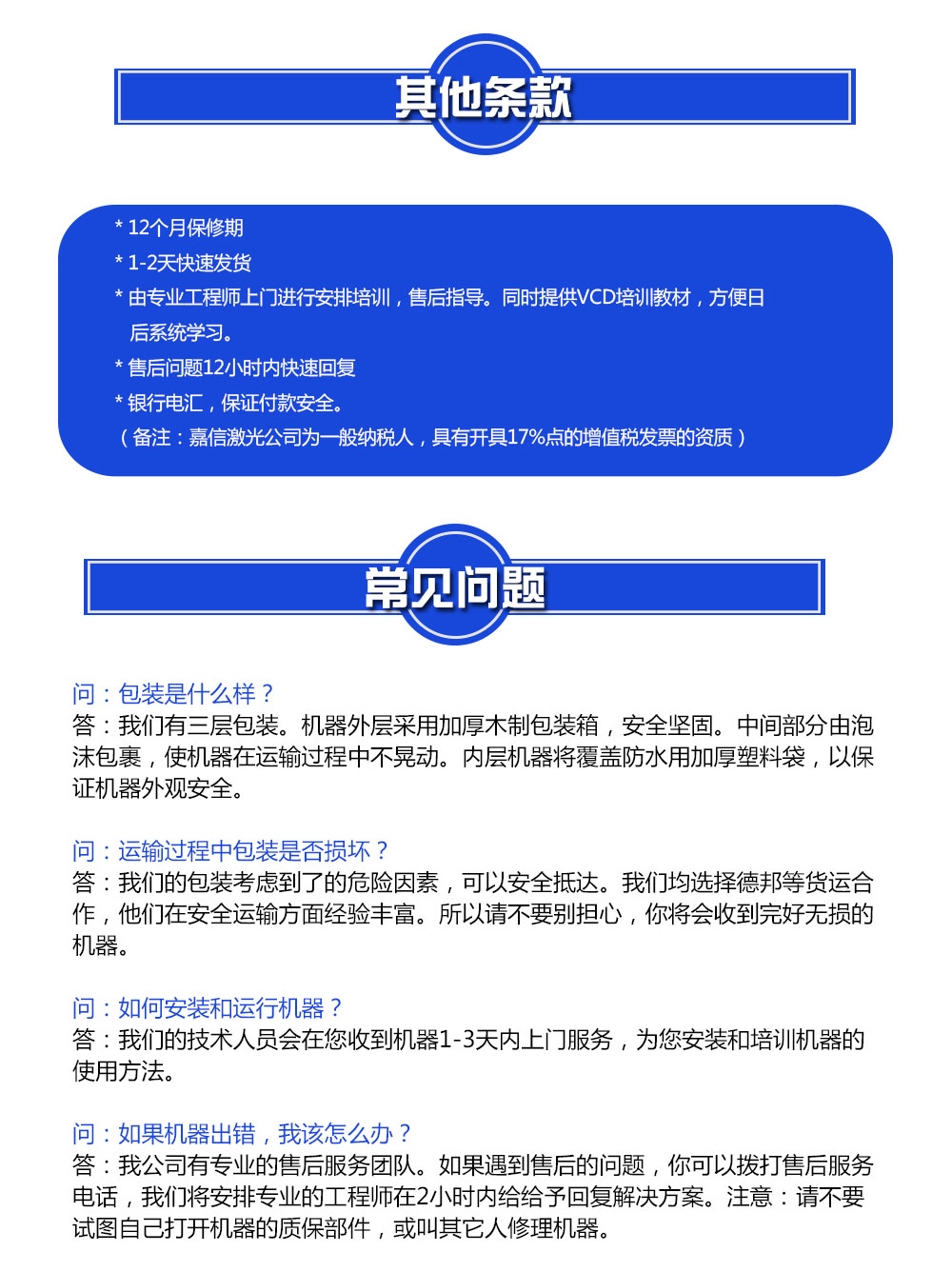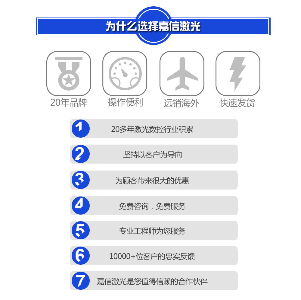 量身定做,穩(wěn)定的機(jī)身設(shè)計(jì),靈活的工作導(dǎo)軌,配套的激光切割軟件,非同一般的切割效果,加工游刃有余,工作效率和加工質(zhì)量遠(yuǎn)勝?gòu)那?。嘉信激光與您同行,為您帶來更大效益的切割助手。