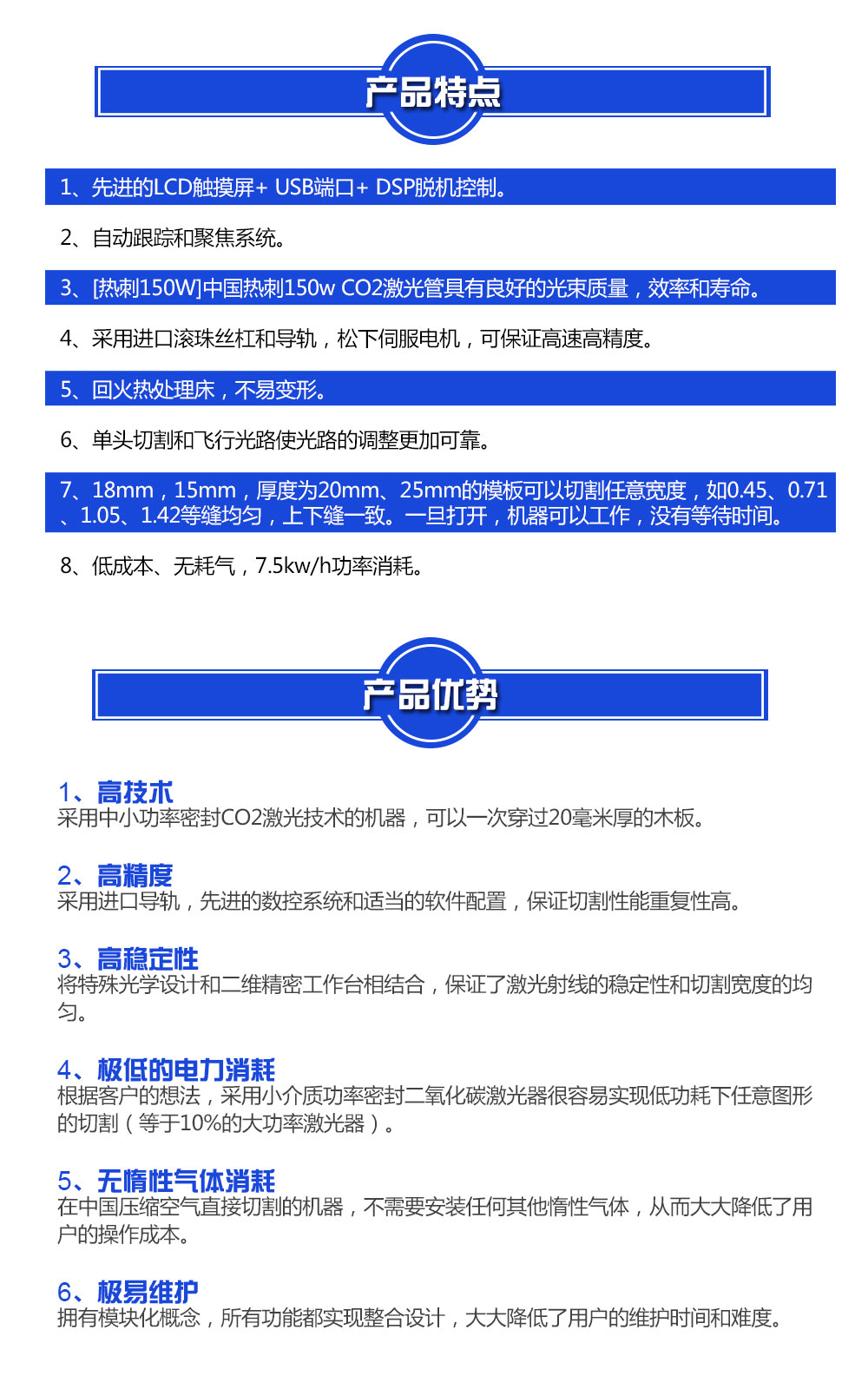 1.高科技:采用中小功率密封二極管激光器,可一次切割20mm厚的木板,技術(shù)水平高。